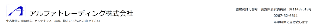 中古販売価格の設定基準 新品価格÷2×0.8=現状動作販売価格になります。 但し、お客様の希望価格と整備内容で 価格は上下致します。 又、遊休設備との代金相殺も受け付けております。 |